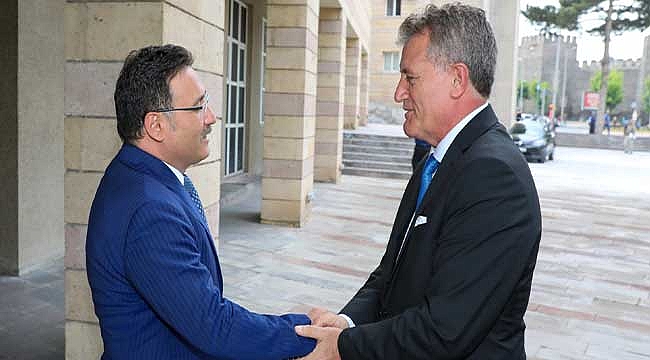 Kayseri’ye gelen KKTC Bayındırlık ve Ulaştırma Bakanı Erhan Arıklı ve beraberindeki heyet, Vali Gökmen Çiçek’i makamında ziyaret etti.