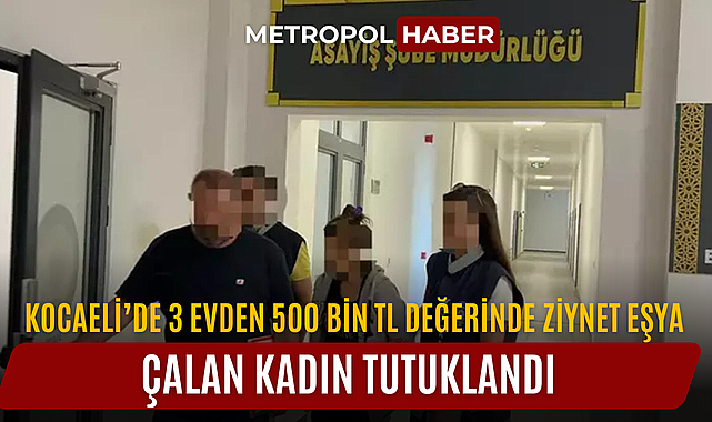 Kocaeli'de 3 evden 500 bin TL değerinde ziynet eşya çalan kadın tutuklandı