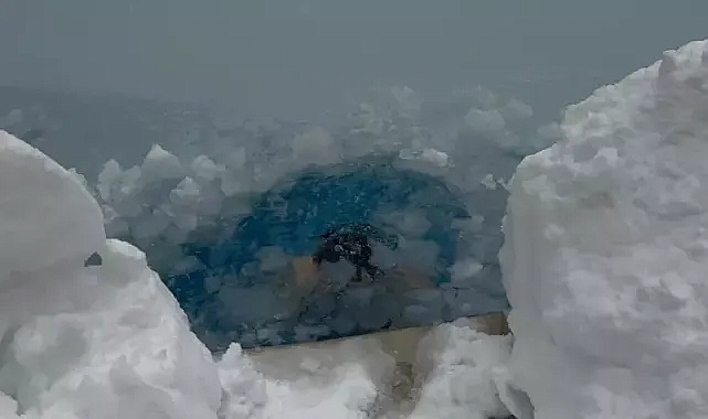 Bolu Dağı'nda günlerdir kar yağışı etkili olurken, hava sıcaklığı da sıfırın altında 10 dereceye kadar düştü. Tatil için kente gelen ve Bolu Dağı bölgesinde bir otelde konaklayan Eren Biri, soğuk havaya aldırış etmeden havuza girdi.