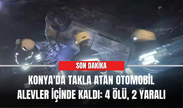 Konya'da takla atan otomobil alevler içinde kaldı: 4 ölü, 2 yaralı