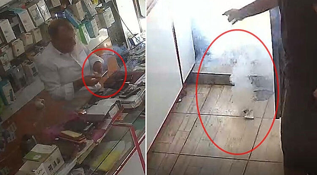 Diyarbakır'ın Sur ilçesinde, teknik servise getirilen cep telefonunun bataryası, dükkan sahibinin elinde patlarken, bu anlar güvenlik kamerasına yansıdı.