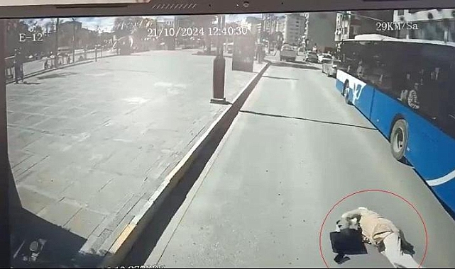 Elazığ'da koşarak yolun karşısına geçerken halk otobüsünün çarptığı S.A. (24) adlı kadın, yaralandı. Kaza, güvenlik kamerasına yansıdı.