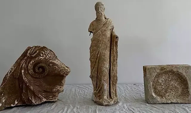 Muğla'nın Milas ilçesinde jandarmanın düzenlediği operasyonda, Kral Hekatomnos'un 2 bin 500 yıllık mermer heykeli, Roma dönemine ait koç başı ve sunak taşı ele geçirildi, 1 şüpheli gözaltına alındı.