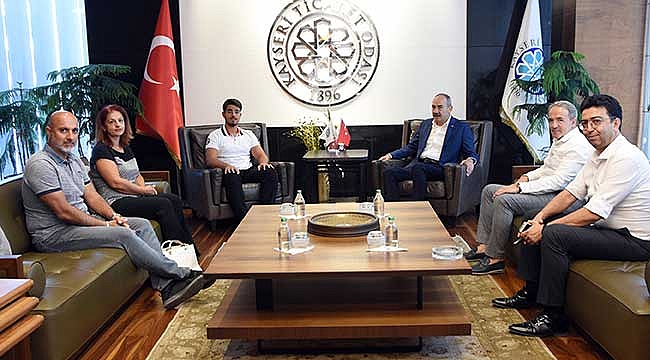 Kayseri Ticaret Odası (KTO) Başkanı Ömer Gülsoy, Yükseköğretim Kurumları Sınavı'nın (YKS) Alan Yeterlilik Testleri (AYT) oturumunda Sayısal Türkiye birincisi olan İdeal Eğitim Koleji öğrencisi Bahadır Selim Bakla, ailesi ve Kolej yöneticilerini makamında ağırladı.