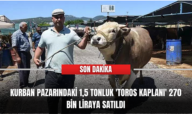 İzmir'in Gaziemir ilçesindeki kurban pazarına Adana'dan getirilen 1,5 tonluk 'Toros Kaplanı' isimli boğa, 270 bin liraya satıldı. Kurban pazarının en büyüğü olan boğanın sahibi Ramazan Dağgüllü (34), "Boğamı pazara getirir getirmez hemen sattım, alana hayırlı olsun" dedi.