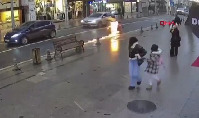 İlçeye bağlı Salih Omurtak Caddesi'nde ismi öğrenilemeyen motokuryenin sürücülüğünü yaptığı motosiklet, seyir halindeyken alev aldı. Durumu fark eden sürücü motosikletini yol kenarında durdurup, uzaklaştı. Çevredeki esnaf, iş yerinde bulunan yangın tüpleriyle alevlere müdahale etti. Esnafın yardımıyla yangın söndürülürken, motosiklette maddi hasar meydana geldi. Yangın anı ise bir iş yerinin güvenlik kamerasına yansıdı. Yangının çıkış nedeninin belirlenmesi için inceleme başlatıldı.
