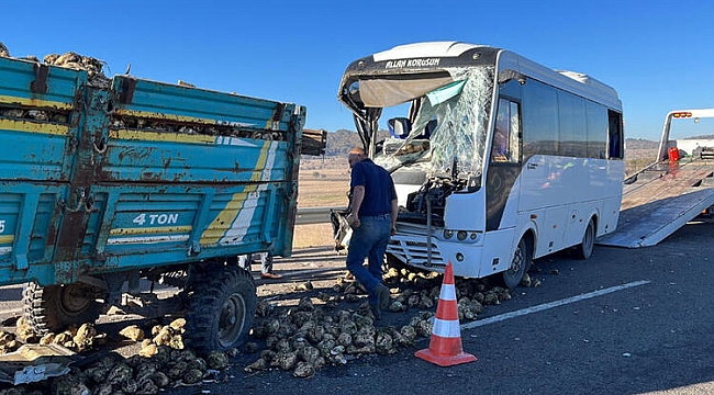 Kütahya’da işçi servis midibüsü, önünde giden pancar yüklü traktöre çarptı. Kazada, 13 kişi yaralandı.