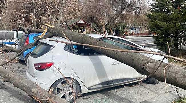 Ankara'da sabah saatlerinden itibaren etkili olan kuvvetli rüzgar hayatı olumsuz etkiledi. Etlik Zübeyde Hanım Kadın Hastalıkları Eğitim ve Araştırma Hastanesi'nin bahçesinde park halindeki iki aracın üzerine rüzgarın etkisiyle ağaç devrildi.