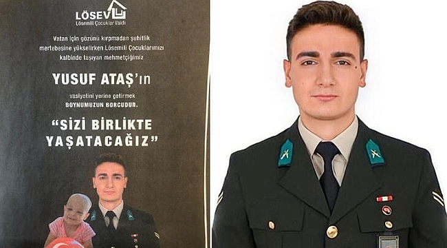 Lösemili Çocuklar Sağlık ve Eğitim Vakfı (LÖSEV), lösemili bir çocuğun eğitim masraflarının karışlanmasını vasiyet eden şehit Piyade Astsubay Çavuş Yusuf Ataş (21) için gazeteye ilan verdi. İlanda, şehit Ataş ile lösemili çocuğun fotoğrafına yer verilerek, "Sizi birlikte yaşatacağız" denildi.