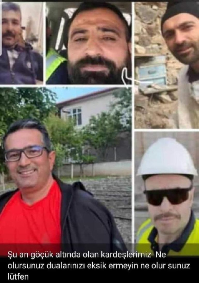 Bu arada toprak altında kalan 6 işçinin isimleri de belli oldu. Bu işçilerin Şaban Yılmaz, Kenan Öz, İbrahim Keklik, Adnan Keklik, Hüseyin Kaya ve Ramazan Çimen olduğu bildirildi.
