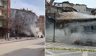 Malatya'da 5.6'lık depremde binaların yıkılma anı kamerada