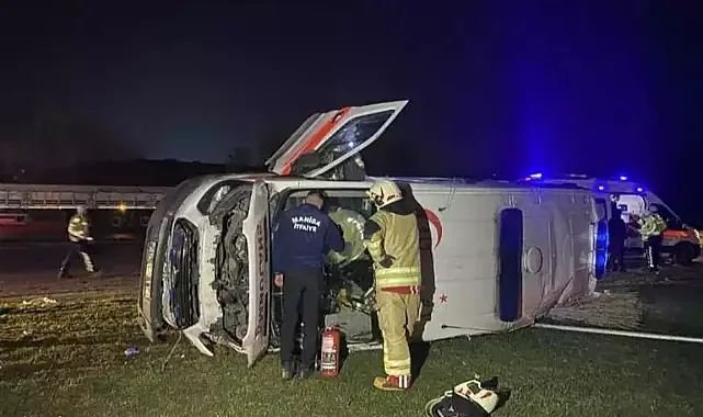 Manisa’nın Şehzadeler ilçesinde otomobille çarpıştıktan savrulan ambulans, devrilerek yan yattı. Kazada ambulanstaki hasta ve 3 sağlıkçı ile birlikte toplam 5 kişi yaralandı.