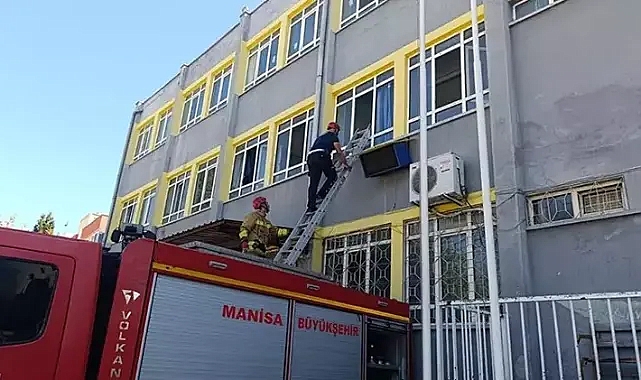 Manisa'da okulda mahsur kalan 3 öğrenciyi itfaiye kurtardı