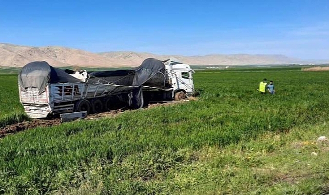 Mardin’in Nusaybin ilçesinde, büyükbaş taşıyan TIR, kontrolden çıkarak devrildi. Sürücünün yaralandığı kazada TIR’dan inen hayvanlar, karayolunda dolaştı.
