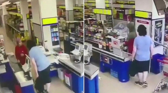 O sırada marketteki çocuklu müşterilere de aldırmayan şüpheli, bıçakla kasiyerin üstüne yürüyerek paraları vermesi için ısrarcı oldu. Bunun üzerine kasiyer, kasaya geçerek paraları verdi. Paraları çantasına koyan şüpheli, elindeki bıçağıyla marketten ayrıldı.