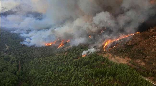 Marmaris’in Yalancıboğaz mevkinde kızılçam ağaçlarıyla çevrili ormanda, saat 12.30 sıralarında yangın başladı. Bölgeden yükselen dumanları görenler, durumu orman ekiplerine bildirdi. Yangına havadan ve karadan müdahale edilirken, rüzgarın etkili olduğu öğrenildi.HELİKOPTER VE UÇAKLAR İLE HAVADAN MÜDAHALEMuğla'nın Marmaris ilçesinde çıkan orman yangınına 13 helikopter, 8 uçak ile havadan, 6 dozer, 20 arazöz ve çok sayıda orman işçisiyle de karadan müdahaleye devam ediliyor. BAKANLIKTAN AÇIKLAMA: 14 UÇAK, 35 HELİKOPTERLE MÜDAHELE EDİLİYOR