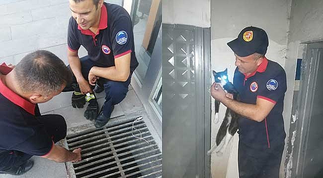 Kayseri’de mazgalın içine düşen kedi, itfaiye ekiplerinin çabası sonucu kurtarıldı.