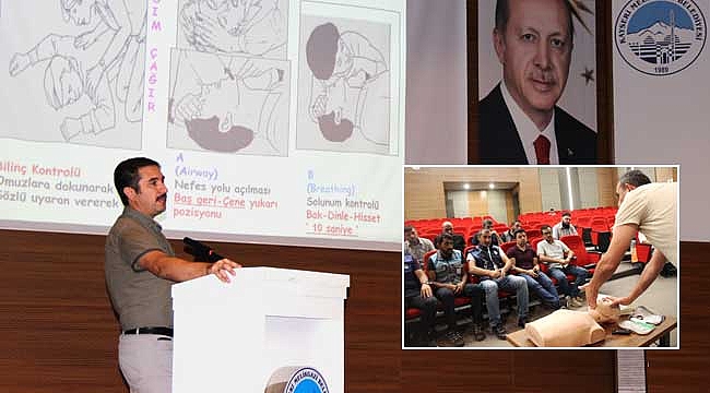 Kayseri İl Sağlık Müdürlüğü Acil ve Afetlerde Sağlık Birimi personeli tarafından Melikgazi Belediye personeline “Temel İlk Yardım Eğitimi" düzenlendi. Eğitimlere toplamda 45 kursiyer katıldı.