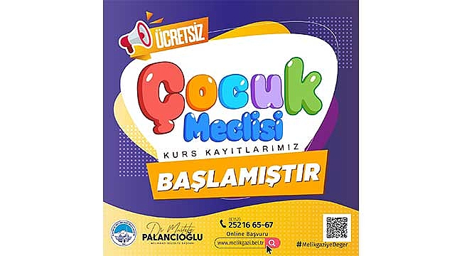 Melikgazi Belediye Başkanı Dr. Mustafa Palancıoğlu, okul döneminde 7-14 yaş arasındaki çocuklar için "Çocuk Meclisi" kurs kayıtlarının başladığını söyledi.