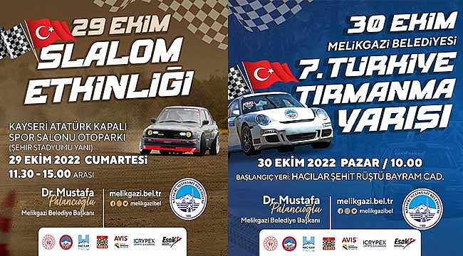 Melikgazi Slalom ve Tırmanma Yarışı hakkında bilgi veren Melikgazi Belediye Başkanı Dr. Mustafa Palancıoğlu, "Hafta sonu otomobil yarış tutkunlarına yine ev sahipliği yapacağız. Nefes nefese izlenecek yarışmanın startını 29 Ekim Cumartesi günü veriyoruz. Yarış RGG Enertürk Enerji Stadyumu, Atatürk Kapalı Spor Salonu önünde 29 Ekim Cumartesi günü saat 11.30'da başlayacak ve saat 15.00'de ise ödül töreni yapılacaktır. 30 Ekim Pazar günü ise Türkiye tırmanma 7. Yarışı ise HACILAR ŞEHİT RÜŞTÜ BAYRAM CADDESİNDE saat 10.00‘da başlayacak olup aynı gün saat 18.15’de Hacılar ilçesi Demokrasi Şehitler Okulunda dereceye girenler için ödül töreni yapılacaktır. Melikgazi'miz; her yönüyle çekim merkezi bir ilçe. Bu tür organizasyonlar hem ilçemizin hem de Kayserimizin tanıtımına büyük fayda sağlıyor. Heyecan dolu tırmanma yarışına tüm hemşehrilerimi beklerim.” dedi.