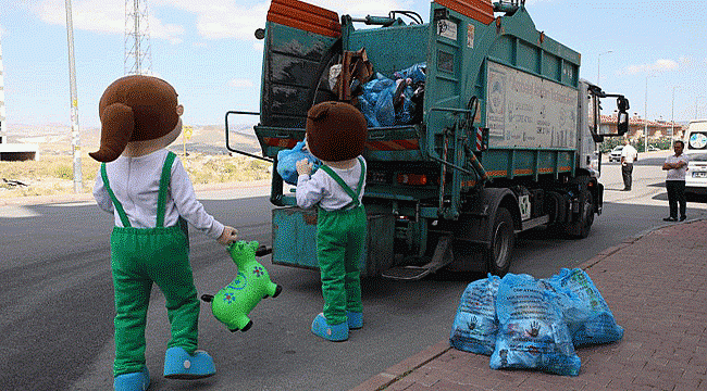 Mahallede farkındalık oluşturmak adına temizlik çalışmalarına sıfır atık maskotları Melikcan ve Melikecan da yardım etti.