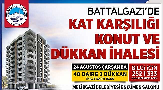 Melikgazi Belediye Başkanı Dr. Mustafa Palancıoğlu, Battalgazi Mahallesi'nde 1 blok 48 daire 3 dükkân için ihale yapılacağını söyledi.
