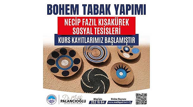 Melikgazi Belediyesi MELMEK kapsamında farklı bir branşta kurs açarak sanat severleri bohem tabak yapımı kursuna davet ediyor.