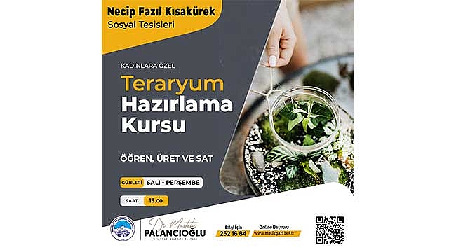 MELMEK kapsamında başlatılan farklı alanlar da ki kurslara bir yenisi daha ekleyen Melikgazi Belediyesi, Necip Fazıl Kısakürek Sosyal Tesisi’nde teraryum hazırlama kursu başlattı.