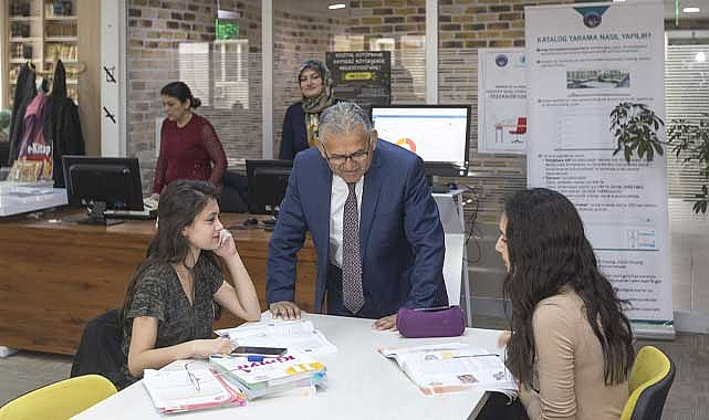 Kayseri Büyükşehir Belediyesi Merkez Halk Kütüphanesi’nin çalışma saatlerinde yapılan ‘7/24 hizmet’ uygulaması kitapseverlerden tam not aldı. Kütüphaneden ve sunulan imkânlardan istifade eden öğrenciler, hizmetten dolayı Başkan Büyükkılıç’a teşekkür ettiler.