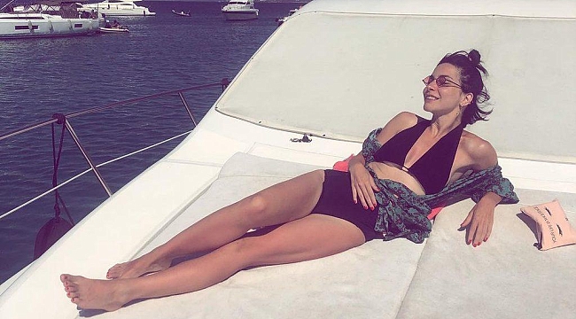 BİKİNİSİYLE UZANARAK POZ VERDİ