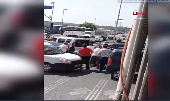 Esenler Metris Cezaevi önünde minibüs sürücüsü, aracı içinde bir grup tarafından darbedildi. O anlar cep telefonu kamerasına yansıdı.