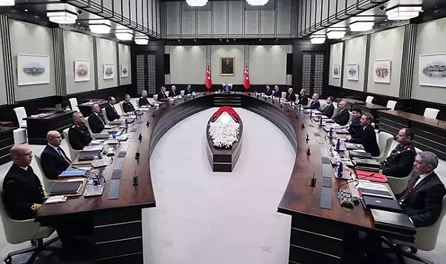Cumhurbaşkanı Recep Tayyip Erdoğan başkanlığında Cumhurbaşkanlığı Külliyesi'nde gerçekleşen ve 2 saat 13 dakika süren 'MGK Toplantısı' sonrası bildiri yayımlandı. Yayımlanan bildiride, düzenli olarak 5 yılda bir, ihtiyaç halinde ivedilikle güncellenen Milli Güvenlik Siyaseti Belgesi (MGSB); Türkiye'de, bölgede ve dünyada meydana gelen ve gelmesi muhtemel gelişmelerin değerlendirilmesiyle yenilendiği ve kurulca uygun bulunduğu, MGSB-2020'nin yürürlükten kaldırılarak MGSB-2025'in yürürlüğe girmesinin kararlaştırıldığı belirtildi.MGK bildirisinde, "2024 yılında vuku bulan ve milli güvenliğimiz bakımından önem arz eden siyasi, askeri, iktisadi ve içtimai gelişmeler değerlendirilmiş; 2025 yılında karşı karşıya kalınabilecek meseleler ile bu çerçevede yürütülecek faaliyetler ve alınacak tedbirler müzakere edilmiştir" denildi.'SURİYE'NİN YENİDEN İNŞASI'MGK bildirisinin devamında, PKK/KCK-PYD/YPG, FETÖ ve DEAŞ terör örgütleri başta olmak üzere milli birlik, beraberlik ile bekaya yönelik her türlü tehdit ve tehlikeye karşı yurt içinde ve yurt dışında azim, kararlılık ve başarıyla sürdürülen operasyonlar ile son dönemdeki uluslararası gelişmeler hakkında kurula bilgilerin sunulduğu kaydedildi. Suriye'deki yeni yönetimin; devletin egemenliğinin, üniter yapısının, toprak bütünlüğünün ve siyasi birliğinin sağlanması ile ülkedeki tüm etnik, dini ve mezhebi grupların temel hak ve hürriyetlerinin güvence altına alınması hususundaki iradesine, Suriye'nin yeniden inşasına, Suriye halkının huzur ve refaha kavuşmasına tam destek verileceğinin bir kez daha teyit edildiği vurgulandı.'GAZZE'DE SAĞLANAN ATEŞKESİN KALICI OLMASININ ALTI ÇİZİLDİ'MGK Bildirisinde, "PKK/KCK-PYD/YPG'nin Suriye'deki mevcut durumu ve muhtemel gelişmeleri herhangi bir şekilde istismar etmesine izin verilmeyeceği hatırlatılmış; bölgemizdeki dost ve kardeş halkların düşmanı olan tüm terör örgütlerinin her halükarda tasfiye edileceği vurgulanmıştır. Gazze'de sağlanan ateşkesin kalıcı olması ve Filistin meselesinin adil bir şekilde çözümü için başlangıç teşkil etmesi gerektiğinin altı çizilmiş; insani yardımların Gazze halkına engelsiz, kesintisiz ve hızla ulaştırılmasının önemine dikkat çekilmiştir. Bununla birlikte, İsrail'in uluslararası hukuku hiçe sayan mütecaviz eylemlerini Suriye topraklarına da sirayet ettirmesinin, bölgede istikrarın sağlanmasına yönelik gayretlerin önünde engel oluşturduğu ifade edilmiştir" ifadelerine yer verildi.Yayımlanan MGK bildirisinde, Türkiye’nin; Afrika, Orta Doğu ve Balkanlar başta olmak üzere dünyanın muhtelif bölgelerindeki ihtilafların çatışmaya dönüşmeden çözümünün sağlanması, süregelen çatışmaların ise sulh ile neticelenmesi istikametindeki faaliyetlerini yoğunlaştırarak küresel barış ve istikrarın tesisine azami katkıyı sunmaya devam edileceği belirtildi.