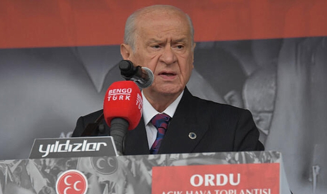 ‘CHP VE İYİ PARTİ YÖNETİMLERİ YOLDAN ÇIKMIŞTIR’Bahçeli, İstanbul Büyükşehir Belediye Başkanı Ekrem İmamoğlu’na Erzurum’daki konuşması sırasında yaşanan olaylara ilişkin, “İstanbul Büyükşehir Belediye Başkanının yol açtığı Erzurum provokasyonun altından da bölücüler ve FETÖ’cüler çıkmıştır. Karşımızdaki güruh, demokrasi katilidir. Karşımızdaki ittifak terör ve ihanet ittifakıdır. Ordu’da CHP’ye oy veren kardeşlerime sesleniyorum; gelin Türkiye Cumhuriyeti’nin 100’üncü yıl dönümüne birlikte sahip çıkalım. Gelin Aziz Atatürk eserlerine ve emanetlerine beraberce destek olalım. İYİ Parti’ye oy veren kardeşlerim, gelin bu şerefe siz de dahil olun. CHP ve İYİ Parti yönetimleri yoldan çıkmıştır. Bu iki parti Türkiye muhalefetinde söz kesmiştir. Yanlarına da Kandil ile Pensilvanya’yı alarak zehir ve zillet saçmaktadırlar. Oyun büyüktür. Senaryo karanlıktır. Tehlike zillet ittifakında düğümlenmiş haldedir” ifadelerini kullandı.‘TERÖR NEREDEYSE MEŞRU HEDEFİMİZ ORASIDIR’Geride kalan iki haftalık süre zarfında cereyan eden provokasyonların iç yüzüne bakıldığında Kılıçdaroğlu’nun, iç ve dış ihanet cephesinin Türkiye’yi mahvetmek için her fırsatı ganimet gördüğünün anlaşıldığını söyleyen Bahçeli, şöyle devam etti:"Allah’ın bir lütfu neticesinde, Gabar Dağı’nda bulunan petrol rezervi zillet ittifakının uykularını kaçırmaktadır. Karadeniz’den çıkarılan doğal gaz zillet ittifakını rahatsız etmektedir. Kılıçdaroğlu’nun ittifak ortağı HDP, milli muharip uçağımız KAAN’dan, İHA’larımızdan, SİHA’larımızdan korkuya kapılmıştır. Ancak korkunun eceli faydası yoktur. Bundan böyle teröristlerin saklanacak, sığınacak, kaçacak güvenli bir yeri olamayacaktır. Terör neredeyse meşru hedefimiz orasıdır. Hainler nerede fitne saçıyorsa oralar temizlenecektir. Cumhuriyetin yeni yüzyılında terör musibetinden Allah izniyle kurtulacağız. Kanlı ve kalleş döngüye son vereceğiz. Bunu hep birlikte başaracağız. Hem aşımıza, işimize, emeğimize, ekmeğimize ve egemenlik haklarımıza sahip çıkacağız hem de insanlığın yüz karası bölücü terör örgütünü yıkıp geçeceğiz.”‘KILIÇDAROĞLU HER HUKUKU UYGULAMAKTAN BAHSETMESİ MAKSATLIDIR’Türkiye’de hakkı yenmiş olan hiç kimsenin olmadığını kaydeden Bahçeli, “Kılıçdaroğlu 6 Mayıs 2023 tarihinde Adana’da demiş ki; ‘Her hakkı teslim edeceğim, her hukuku uygulayacağım.’ Sayın Kılıçdaroğlu, sana göre hak nedir? Her hakkı teslim edeceğim derken muhatapların kimlerdir? Uygulamak istediği hukukun muhtevası nelerden oluşmaktadır? Türkiye’de hakkı yenmiş, hakları çiğnenmiş hiç kimse yoktur. Eğer çıkarsa onların haklarını iade etmek de namus borcumuzdur. Kılıçdaroğlu’nun her hukuku uygulamaktan bahsetmesi maksatlıdır. Türkiye’de hukuk tektir. Elbette hukukun üstünlüğü hakim ve havidir. Kılıçdaroğlu için hak ve hukukun konusu teröristler midir? Terörist Demirtaş’ı bırakmak hangi hakkın, hangi hukukun gereğidir? Türkiye’de bölücülerin hukuku değil, milletin hukuku egemendir. Bu gerçeği hiç kimse değiştiremez, değiştirmeye de gücü yetmez, yetemez. Teröristler için adalet ve hukuk isteyen CHP zihniyeti, esasen kahramanları mahcup ve mahkum etmeninin, şehitlerimizin kemiklerini sızlatmanın peşindedir” dedi.‘BUNLARIN ALAYI ZİLLETTEDİR’“İYİ Parti de aynı melanet yolun yolcusudur” diyen Bahçeli, sözlerini şöyle sürdürdü:“Afrin’i geri alacağız diyen bölücü teröristlere anladıkları dilden mesaj verdik, şu işe bakınız ki, cevap İYİ Parti Başkanından geldi. Demek ki, attığımız taş aynı daldaki iki kuşa birden isabet etti. İYİ Parti Başkanının PKK’ya avukatlık yapması rezalettir. Ancak iradesini ve itibarını kaybetmiş bir siyasetçi, bu içler acısı durumlara düşecektir. Bunların alayı zillettedir. Bunların alayı istikametini kaybetmiştir. İlk kez oy verecek genç kardeşlerim, varlığımızı, birliğimizi ve bağımsızlığımızı birlikte müdafaa edelim. Sayıları 5 milyonu aşan genç kardeşim inanıyorum ki, ‘Elbette öyle, benim ilk oyum MHP’ye’ diyeceklerdir. Türk gençliği aldanmaz, aldatmaz, yalan vaatlere kanmaz. Karadeniz’in incisi Ordu, zillete prim vermez. Kılıçdaroğlu ve ittifak ortakları Türkiye’nin karşısında, biz yanındayız. Kılıçdaroğlu ve ittifak ortakları doğal gaz ve petrol keşfinin karşısında, biz yanındayız. Kılıçdaroğlu ve ittifak ortakları rant, çıkar ve ikbal amacında, biz önce ülkem ve milletim, sonra partim ve ben anlayışındayız. Maalesef büyük çoğunluğu din kardeşimiz ve soydaşımız olan geniş coğrafyalarda kin, nefret, zulüm devamlı körüklenmektedir. Anlaşılan buralarda petrol bitmedikçe, gaz bitmedikçe, su bitmedikçe, paylaşacak toprak bitmedikçe savaşlar da bitmeyecektir. Görünen odur ki, bu kaynaklar tükenmedikçe gözyaşları da sona ermeyecektir. Afrika’nın bir ucundan, Asya’nın bir ucuna kadar milyarlarca insan bir lokma ekmek, bir parça hürriyet, bir nebze olsun haysiyet mücadelesi için canını dişine takmaktadır. Kaybedenler, nehir gibi kanı dökülenler tarihin her devrinde olduğu gibi yine mazlumlardır. Bugün milyarlarca insan kendi emeğiyle ayakta durmak, ürettiğini satmak, huzur içinde yaşamak, sahip oldukları kaynakları refahı için kullanmak istemektedir. Kaldı ki bu istek haklıdır ve meşrudur. Bu masum talepleri sekteye uğratmak maksadıyla adına bazen terörizmi önlemek, bazen barış getirmek, bazen demokrasi kazandırmak denen küresel baskı ve dayatma mekanizması sürekli canlı tutulmaktadır."MHP lideri Bahçeli: Namussuz montajcılar, özel hayat cellatları işbaşındadır