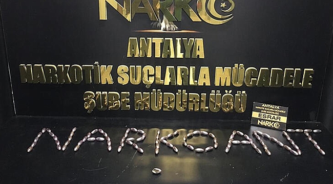 Antalya Havalimanı'na gelen Fas uyruklu H.L., şüpheli tavırlar sergiledi. Hastaneye götürülen ve röntgen filmi çekilen şüphelinin midesinde, 100 kapsül halinde daralı 1100 gram macun esrar tespit edildi. Gözaltına alınan H.L. hakkında 'Uyuşturucu veya uyarıcı madde ticareti yapma veya sağlama' suçlarından işlem yapıldı.