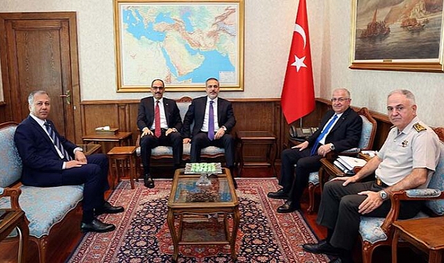 Milli Savunma Bakanı Yaşar Güler, Dışişleri Bakanı Hakan Fidan, İçişleri Bakanı Ali Yerlikaya, Genelkurmay Başkanı Orgeneral Metin Gürak ve MİT Başkanı İbrahim Kalın, Milli Savunma Bakanlığı'nda bir araya geldi.
