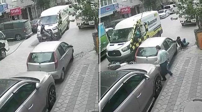 Sultangazi'de, minibüsün çarpmasıyla savrulan kasksız ve ehliyetsiz yabancı uyruklu motosikletli yaralandı. Kazayı gören bir kişi, yaralanan motosikletli yerine otomobilinin zarar görüp, görmediğine baktı. Yaşananlar saniye saniye güvenlik kamerasına yansıdı.
