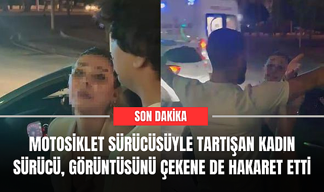 Motosiklet sürücüsüyle tartışan kadın sürücü, görüntüsünü çekene de hakaret etti
