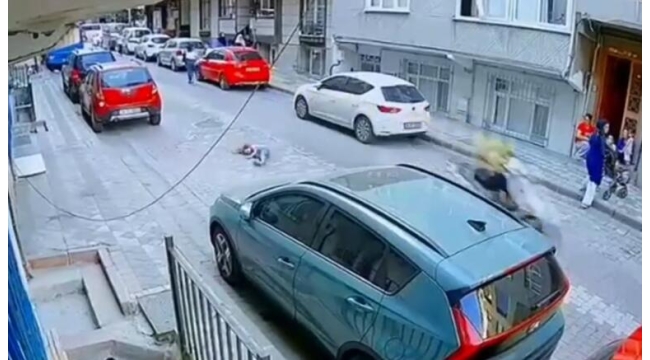 Sultangazi'de, sürücüsünün sokakta hızla ilerlediği motosiklet yola bir anda fırlayan 5 yaşındaki çocuğa çarptı. Savrulan çocuk şans eseri yara almazken, motosikletli durmayarak yoluna devam etti. Kaza anları güvenlik kamerasına yansıdı.