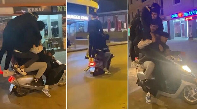 Mimar Sinan Mahallesi Eşref Bitlis Caddesi'nde 5 kişi, hiçbir güvenlik önlemi almadan motosiklete binerek kentin işlek caddelerinde gezintiye çıktı. Bu anlar, cep telefonu kamerasıyla kaydedildi. Görüntülerde, 5 kişinin motosiklet üzerinde birbirine tutunarak üst üste yolculuk yaptıkları görüldü. Hem kendi canlarını hem de trafik güvenliğini tehlikeye atan gençler, sosyal medyada da tepki çekti.