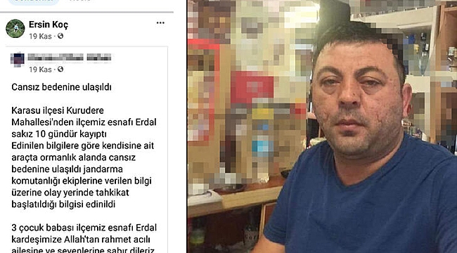 Karasu ilçesi Kuru Dere Mahallesi'nde 9 Kasım tarihinde evinden otomobiliyle ayrılan ve bir daha kendisinden haber alınamayan Erdal Sakız'ın 10 gün sonra Çam Dağı ormanında otomobilinin içerisinde baş ve göğüs kısmında mermiyle elinden de tüfekle vurulduğu tespit edilen cesedi bulundu. Cinayetin ardından fındık tüccarı Ersin Koç, eşi Lale Koç ve 16 yaşındaki oğulları S.K. tutuklandı. Erdal Sakız'ın cesedinin bulunduğu gün, tutuklanmadan önce Ersin Koç'un 'Cansız bedenine ulaşıldı' şeklinde sosyal medya hesabından paylaşım yaptığı belirlendi.