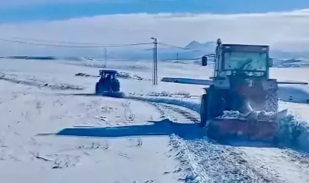 Kars’ın Akyaka ilçesinde kar yağışı hayatı olumsuz etkiledi. Küçük Aküzüm köyünde yaşayanlar, muhtar Teoman Gelekçi öncülüğünde, "Her şeyi devletten beklememek gerekir" diyerek, traktörleriyle köy içi yolları ulaşıma açtı.