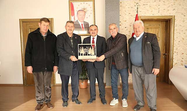 2023 yılında yapılacak hizmetler hakkında fikir alışverişinde bulunan muhtarlar ziyaret sonrası Belediye Başkanı Mehmet Cabbar adına Bayraktepe Mesira alanına diktikleri çam fidelerini temsil eden tabloyu hediye ettiler.