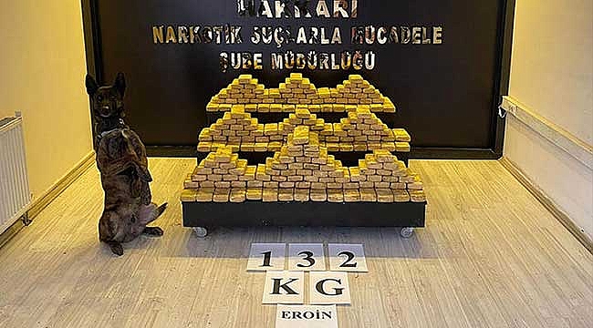 İl Emniyet Müdürlüğü Narkotik Suçlarla Mücadele Şubesi ekipleri, Yüksekova'dan batı illerine yüklü miktarda uyuşturucu madde götürüleceği ihbarı aldı. Harekete geçen ekipler, belirlenen bir depoya baskın yaptı. narkotik köpeği 'Ayzek' ile yapılan aramada 132 kilo 300 gram eroin ele geçirildi. Bir şüpheli gözaltına alınırken, soruşturma sürüyor.