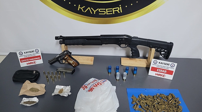 Pınarbaşı ilçesinde yapılan operasyonlarda ise toplam 13 uyuşturucu taciri yakalandı. Şahıslara yapılan aramalarda 65 gram esrar, 7 gram bonzai, 2 adet ruhsatsız tabanca, 1 adet pompalı tüfek, 9 Adet 9 mm tabanca fişeği ve 12 adet pompalı tüfek kartuşu ele geçirildi.