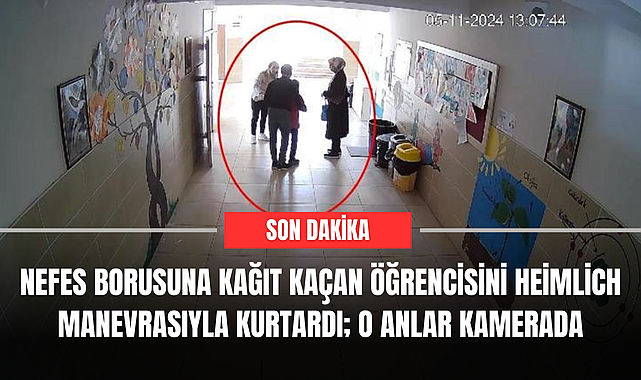 Nefes borusuna kağıt kaçan öğrencisini Heimlich manevrasıyla kurtardı; o anlar kamerada