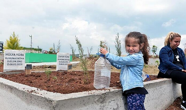 Adana’da depremde hayatını kaybedenlerin yakınları, bayram arifesinde mezarlıkları ziyaret edip, çiçek ve bayram şekeri bıraktı. 4 yaşındaki Nil Ölçer de, Hasan Alpargün Apartmanı’nda kaybettiği anneannesi Hülya Yürk (61) ile dedesi Zafer Yürk’ün (72) kabrini ziyaret etti.