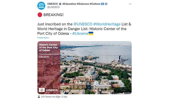 Birleşmiş Milletler Eğitim, Bilim ve Kültür Örgütü’nden (UNESCO) yapılan yazılı açıklamada, dün Dünya Mirası Komitesi’nin (World Heritage Committee) Ukrayna’nın liman kenti Odessa’nın tarihi merkezini Dünya Mirası Listesi’ne almaya karar verdiği bildirildi. Şehrin tarihi merkezinin aynı zamanda Tehlike Altındaki Dünya Mirası Listesi’ne de alındığı ve bunun da Ukrayna'nın mülkün korunmasını sağlamak ve gerekirse saldırıya uğrarsa yeniden inşasına yardımcı olmak için talep edebileceği güçlendirilmiş teknik ve finansal uluslararası yardıma erişim sağladığı ifade edildi.Açıklamada UNESCO Genel Direktörü Audrey Azoulay’in de ifadelerine yer verildi. Odessa’yı sinemaya, edebiyata ve sanata ‘damgasını vurmuş efsanevi bir şehir’ olarak nitelendiren Azoulay, “Odessa, böylece uluslararası toplumun güçlendirilmiş koruması altına alınıyor. Savaş devam ederken, bu karar, her zaman küresel çalkantıların üstesinden gelen bu şehrin daha fazla yıkımdan korunmasını sağlamak için ortak kararlılığımızı somutlaştırıyor” dedi.SAVAŞ NEDENİYLE HIZLANDIRILMIŞ PROSEDÜRKomite’nin, savaşın başlangıcından bu yana şehre yönelik tehditleri göz önüne alarak sözleşmenin operasyonel ilkelerinde öngörülen bir ‘acil durum prosedürü’nü kullandığı ve UNESCO’nun, geçen yazın başlarında adaylığı hazırlamak için uluslararası uzmanlarla Ukraynalı uzmanları bir araya getirdiği belirtildi. Ukrayna Devlet Başkanı Volodimir Zelenski’nin Ekim 2022’de örgüte çevrimiçi bir konuşma yaparak başvuruyu resmileştirdiği ve değerlendirme kuruluşlarının Odessa’nın adaylığını takip eden haftalarda inceleyerek, bu hafta Fransa’nın başkenti Paris’te düzenlenen olağanüstü Dünya Mirası Komitesi’nde değerlendirilmesine izin verdiği ifade edildi.