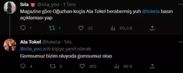 Oğuzhan Koç ve ünlü oyuncu Demet Özdemir Ağustos 2022'de nikah masasına oturmuş, 8 aylık evlilikleri 8 Mayıs'ta tek celsede bitmişti. Ani bir kararla boşanan ve evlilikleri kısa süren çift sık sık magazin gündeminde konuşuluyor.Son olarak Oğuzhan Koç aşk açıklamasıyla kafaları karıştırmış ardından ünlü sosyal medya fenomeni Ala Tokel ile görüntülenmişti. Ala Tokel ise, hakkında çıkan haberlerle dalga geçerek Oğuzhan Koç'un komşusu olduğunu ifade etmişti.