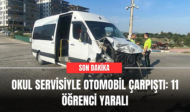 Okul servisiyle otomobil çarpıştı: 11 öğrenci yaralı