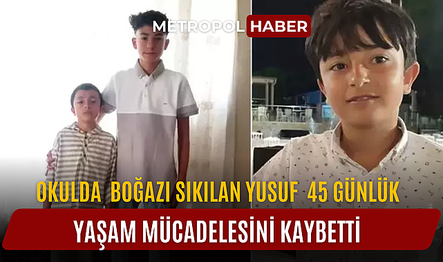 Okulda boğazı sıkılan yusuf 45 günlük yaşam mücadelesini kaybetti